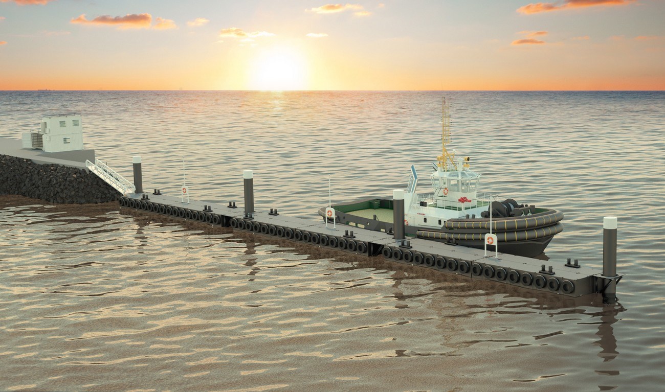 суда могут безопасно закрепляться, изготовленный из стальных модульных понтонов контейнерного типа.